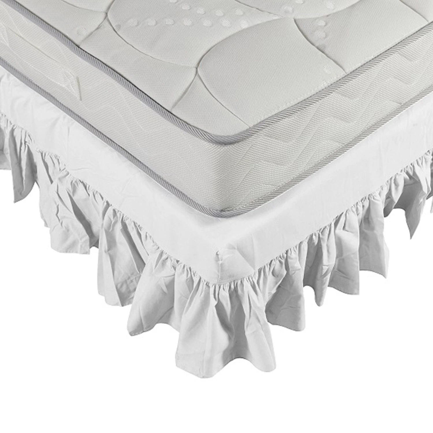 Ce cache sommier blanc à volants froncés