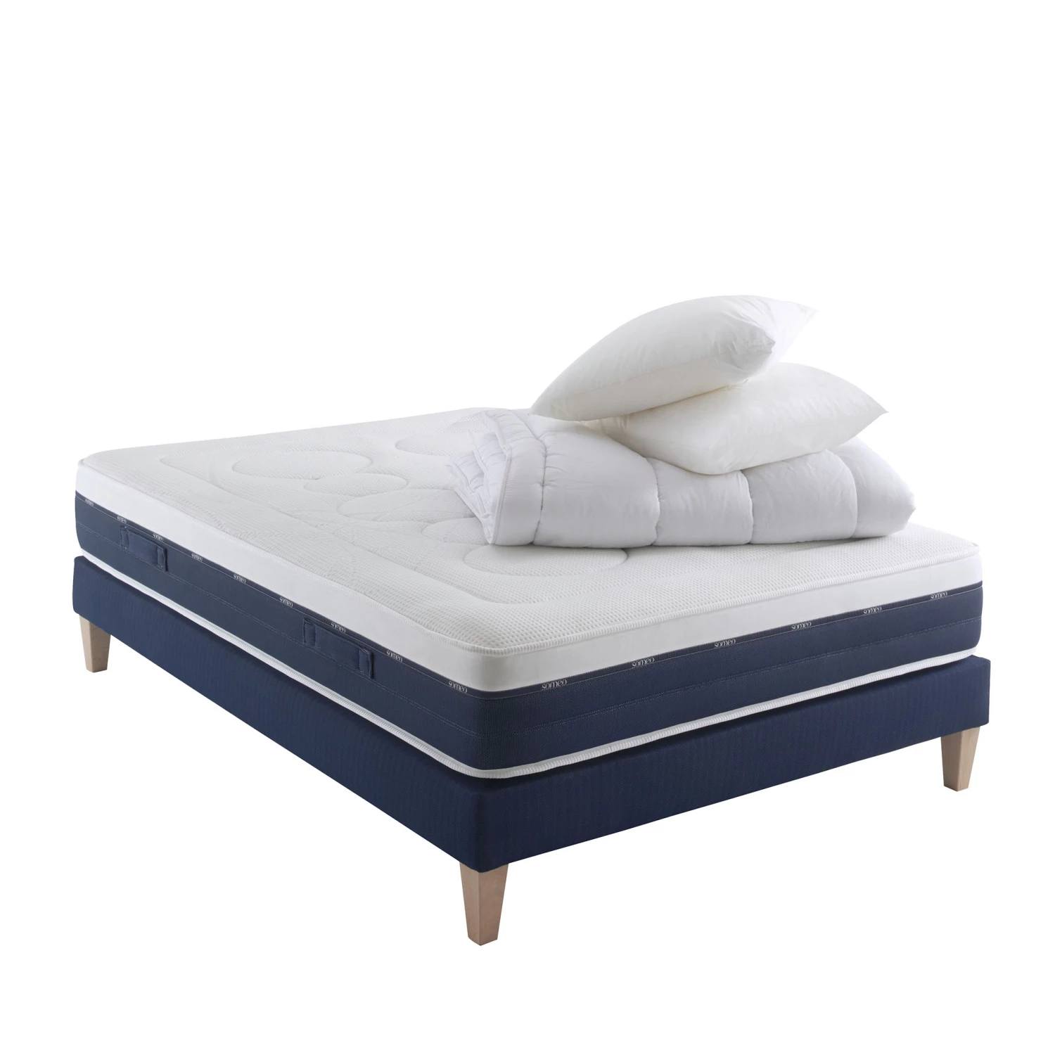 Ensemble matelas ressorts et mémoire de forme, sommier, pieds, couette et oreiller Rêve 600 – SOMEO