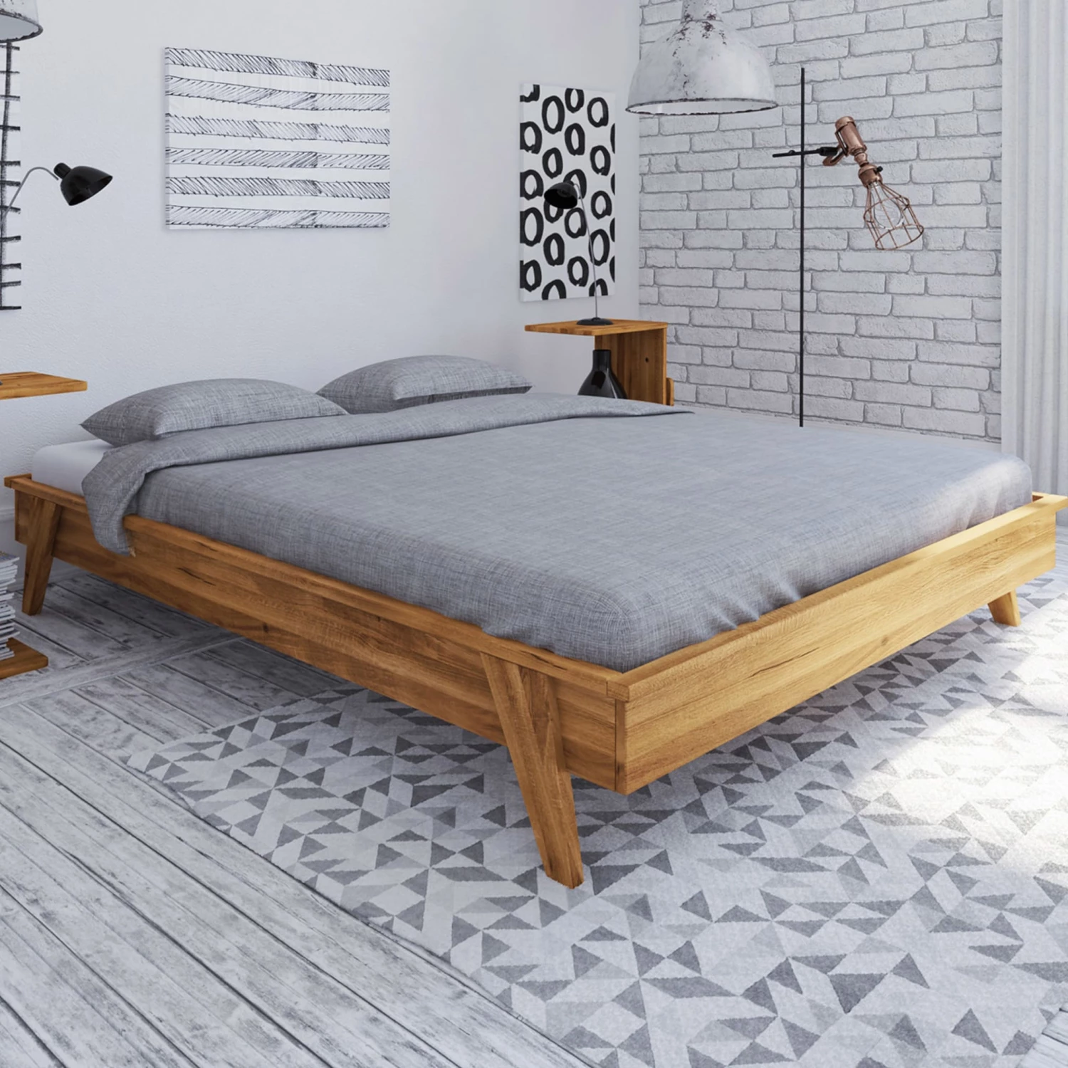 Lit avec pieds inclinés en chêne massif clair – LT36003.