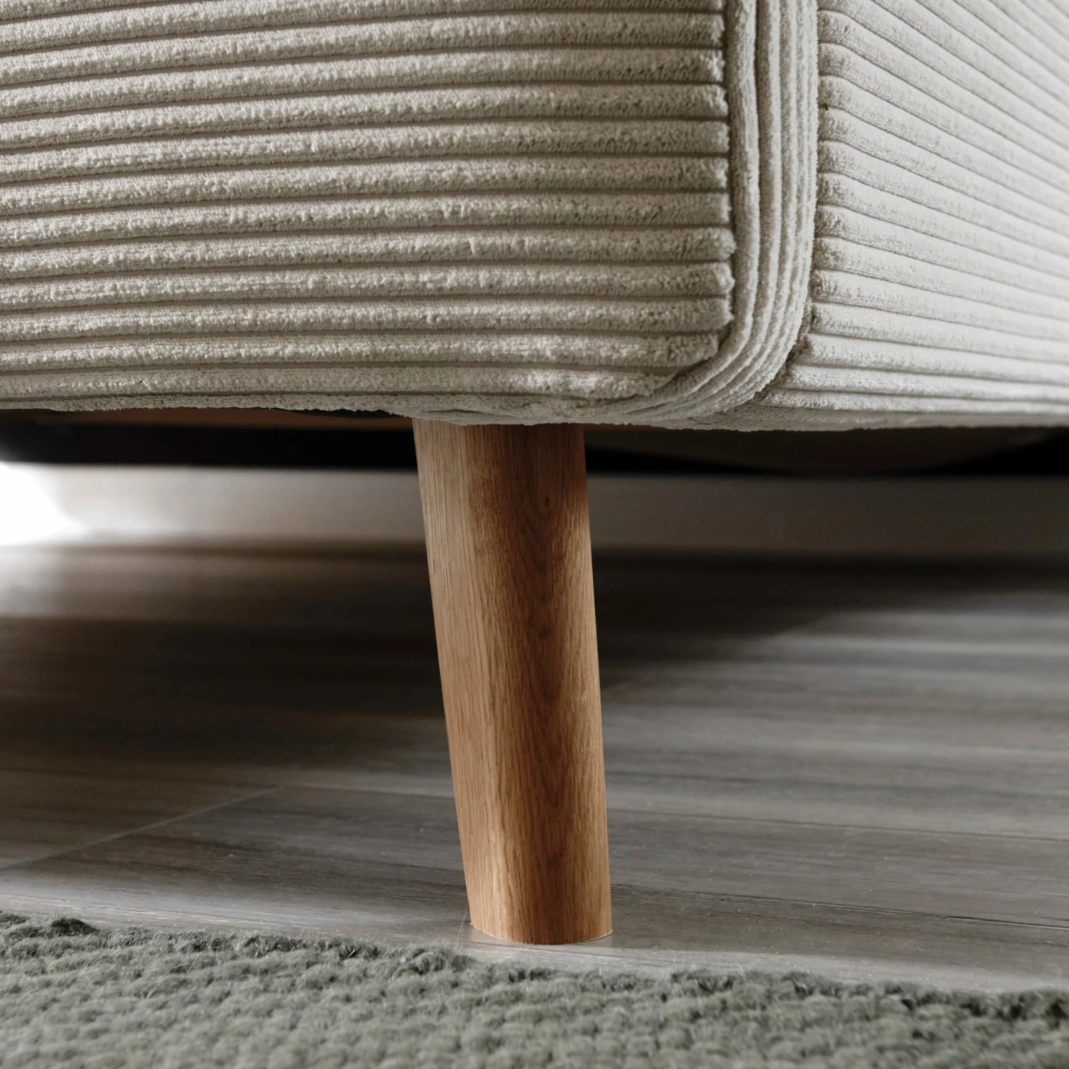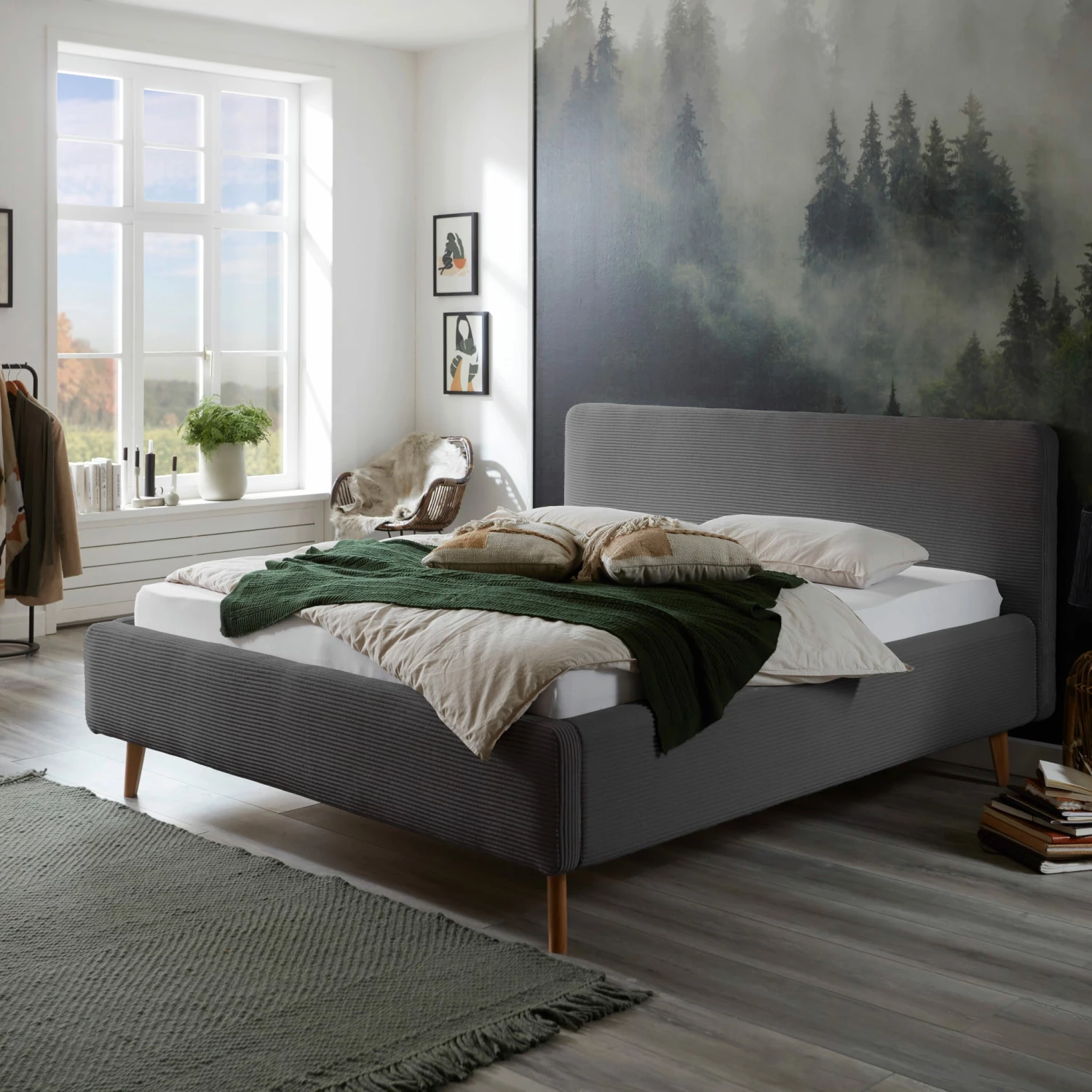 Ce lit en bois au style scandinave recouvert de tissu capitonné velours est un atout idéal pour sublimer et aménager votre chambre. Il possède une jolie tête de lit lisse qui apporte style et confort. Sa structure en bois garantit une structure solide, elle est recouverte de velours cotelé en polyester lui apportant un visuel agréable et confort. Il est aussi équipé d’un renfort central sur pieds afin de soutenir votre sommier. Celui-ci pourra être réglé en hauteur afin de s’adapter au mieux à l’épaisseur de votre couchage. Ses bords arrondis favorisent aussi cet effet. Ses pieds en bois massif sont inclinés afin d’assurer la stabilité du meuble. Un espace de 20 cm est présent sous le lit afin de vous permettre d’y ranger discrètement ce que vous souhaitez.