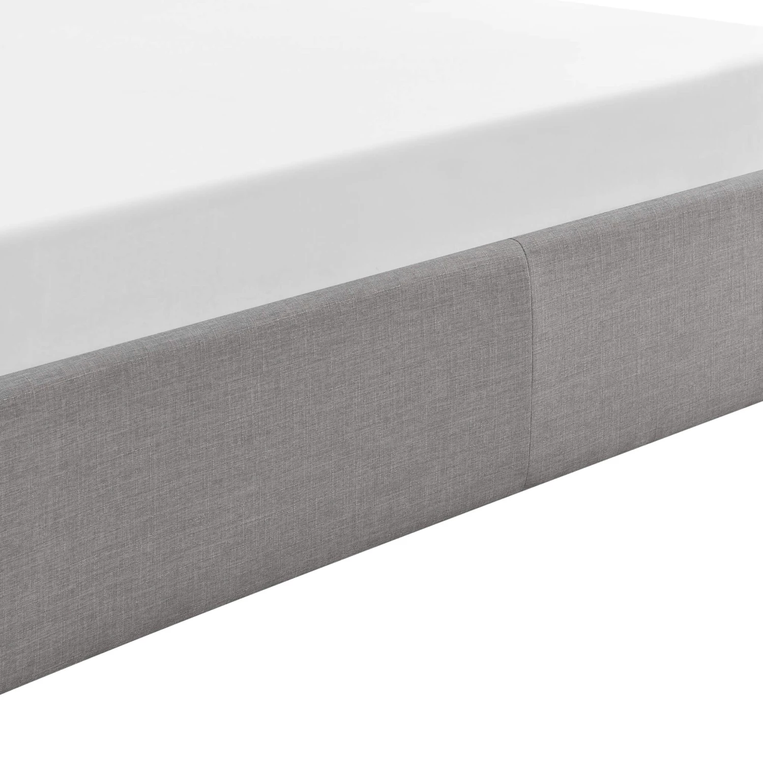 Lit coffre en bois massif avec tête de lit tissu gris et