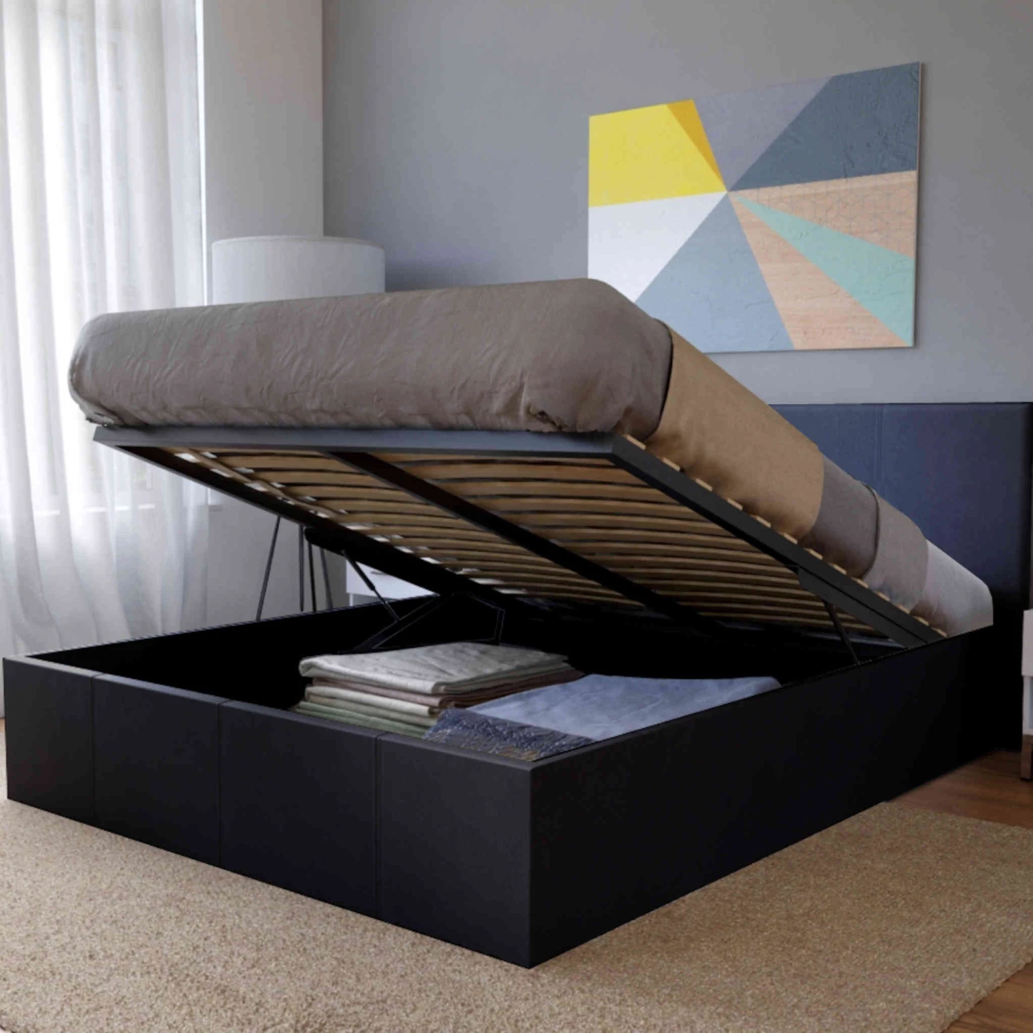 Lit coffre en métal avec revêtement simili cuir noir – LT14020