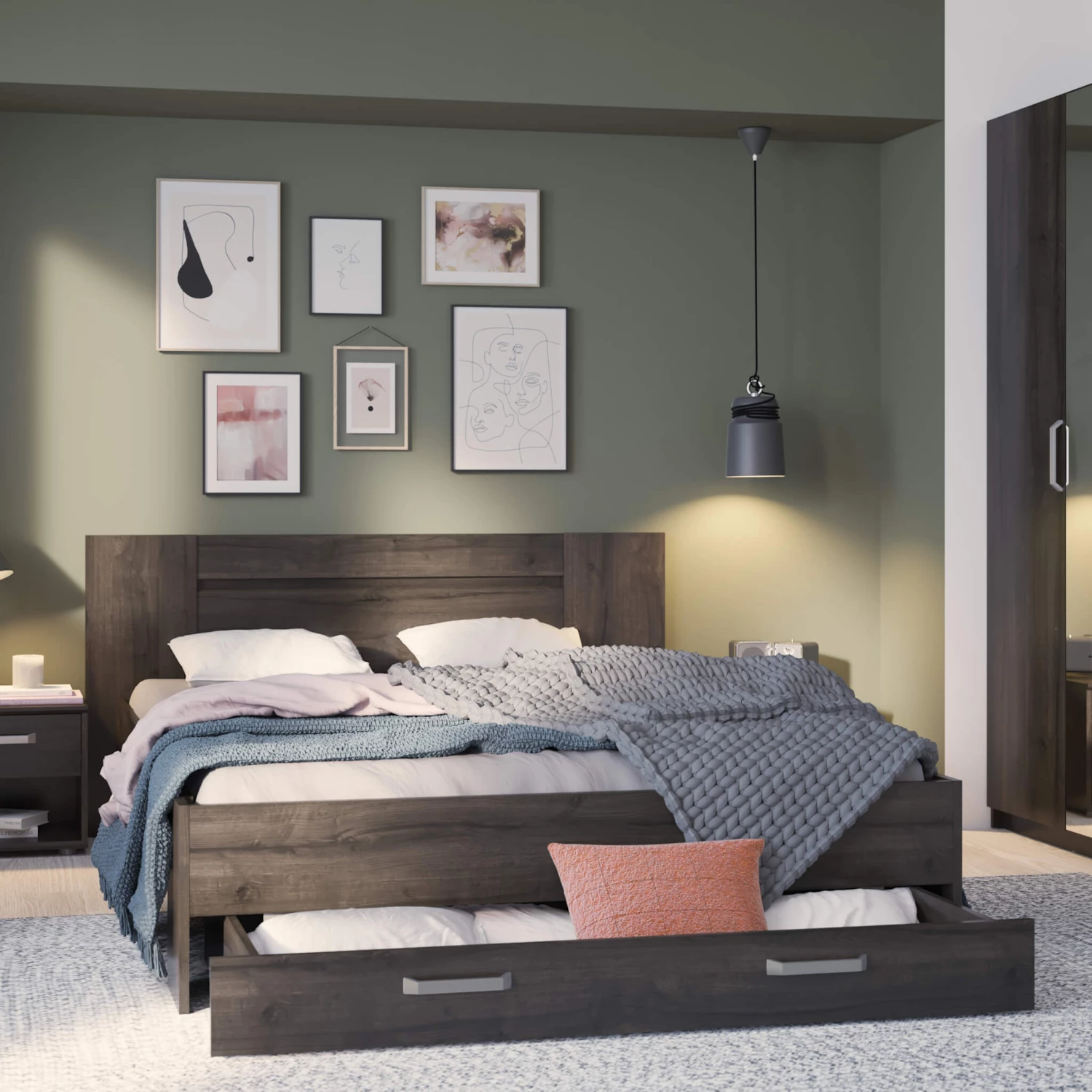- Tiroirs de lit pour optimiser le rangement de la chambre
