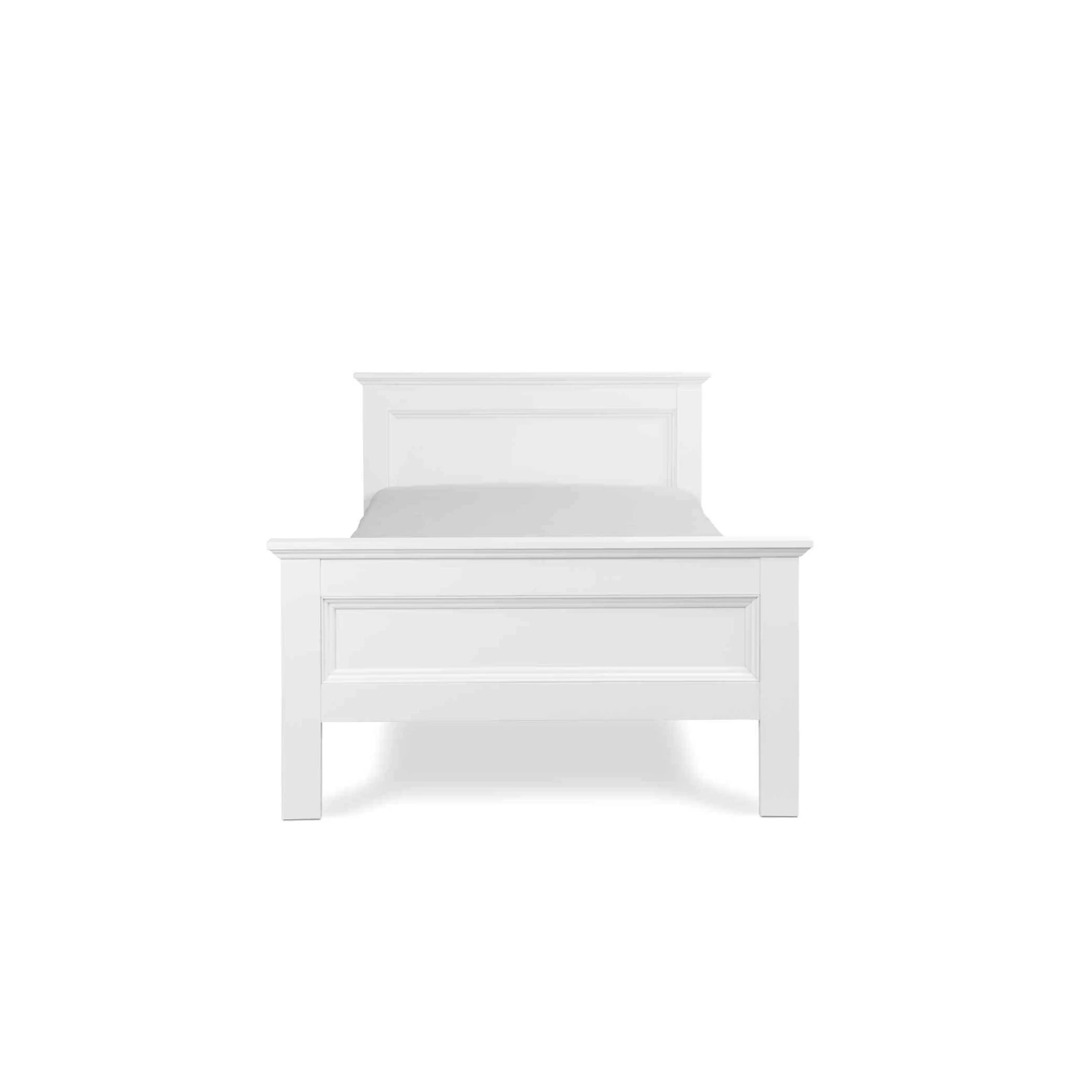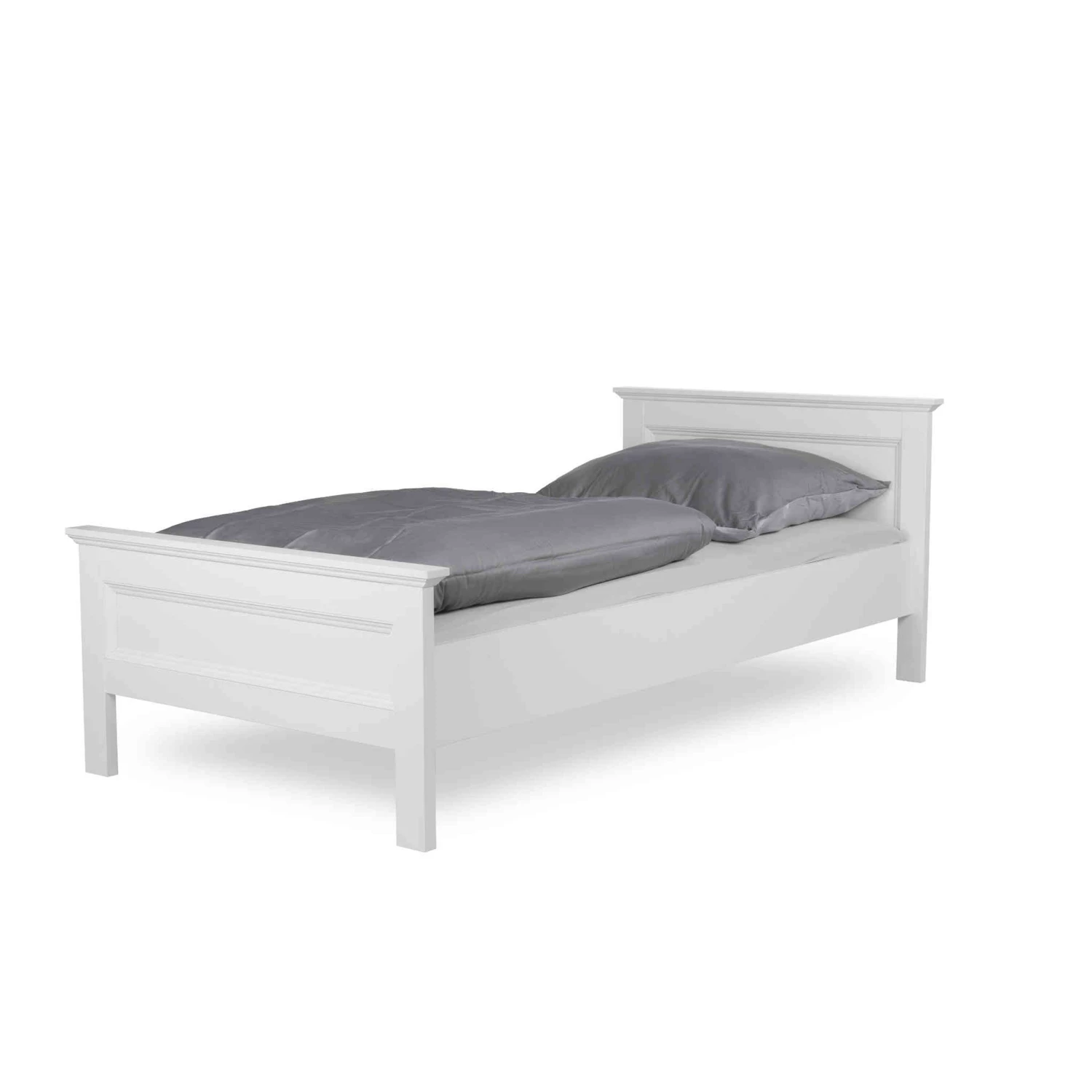 Lit composé de panneaux de particules revêtu de papier décor blanc. Il comporte une tête de lit d’une hauteur de 80 cm. Il est prévu pour accueillir un cadre à lattes à insérer sur les inserts métalliques disposés aux angles du lit (le matelas et le cadre à lattes sont tous les deux en option, vendus séparément).