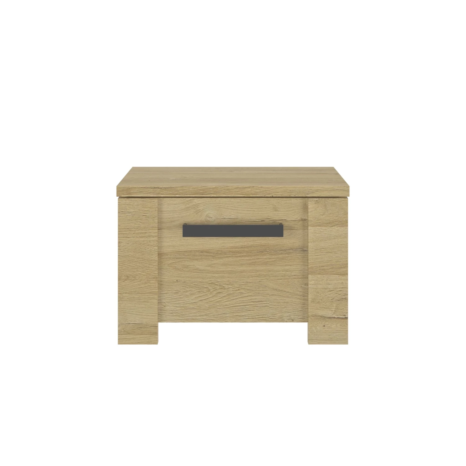 Deux chevets, idéals pour ranger vos affaires préférées tout en apportant un esprit moderne à la décoration de votre chambre. Leurs tiroirs avec frein sont équipés d’une poignée en zamak noir mat vous ouvrant 1 bel espace de rangement. La structure en panneaux de particules possède une finition imitation chêne ce qui lui donne ce style soigné.