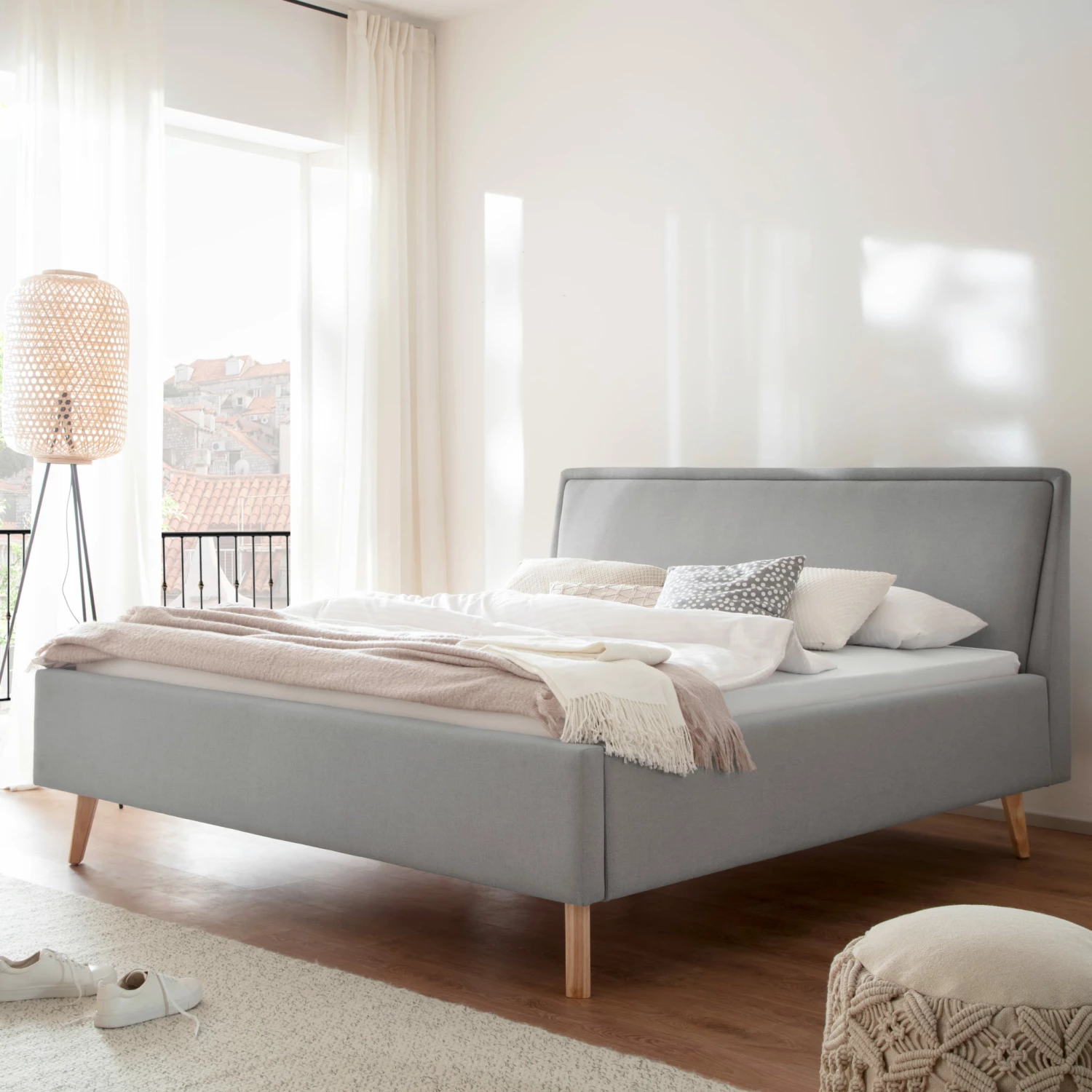 Ce lit en bois au style scandinave rembourré en tissu est un atout idéal pour sublimer et aménager votre chambre. Il possède une jolie tête de lit lisse en aspect coussin qui apporte style et confort. Celle-ci possède une hauteur de 105 cm, vous laissant largement l’espace pour vous y adosser. Sa structure en bois garantit une structure solide, elle est recouverte de tissu en polyester lui apportant un visuel agréable et confort. Il est aussi équipé d’un renfort central sur pieds afin de soutenir votre sommier. Celui-ci pourra être réglé en hauteur afin de s’adapter au mieux à l’épaisseur de votre couchage. Ses bords arrondis favorisent aussi cet effet. Les pieds en bois massif sont inclinés afin d’assurer la stabilité du meuble. La profondeur d’insertion est d’environ 20 cm vous garantissant le confort recommandé.
