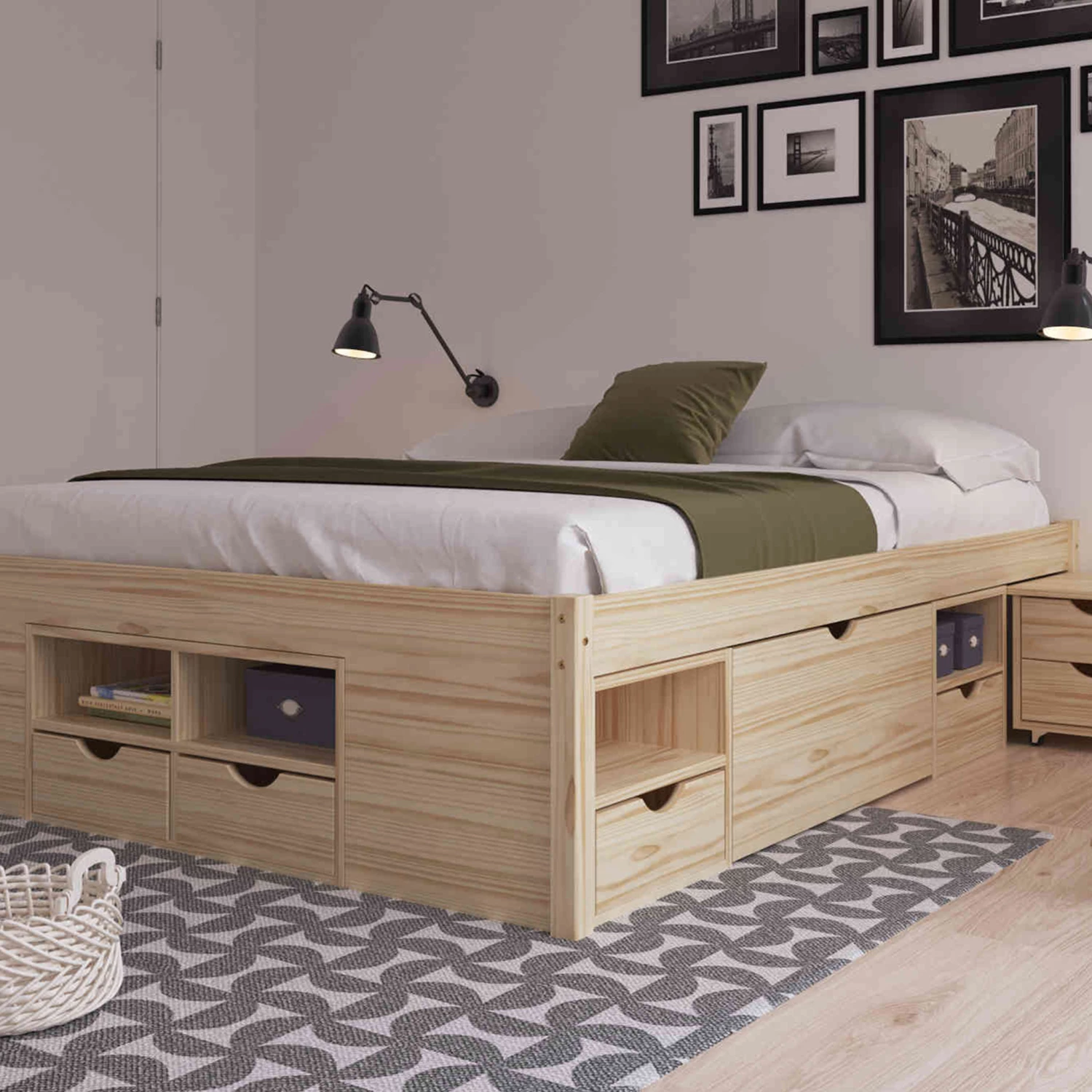Lit tiroirs avec chevets intégrés en bois massif – LT12012