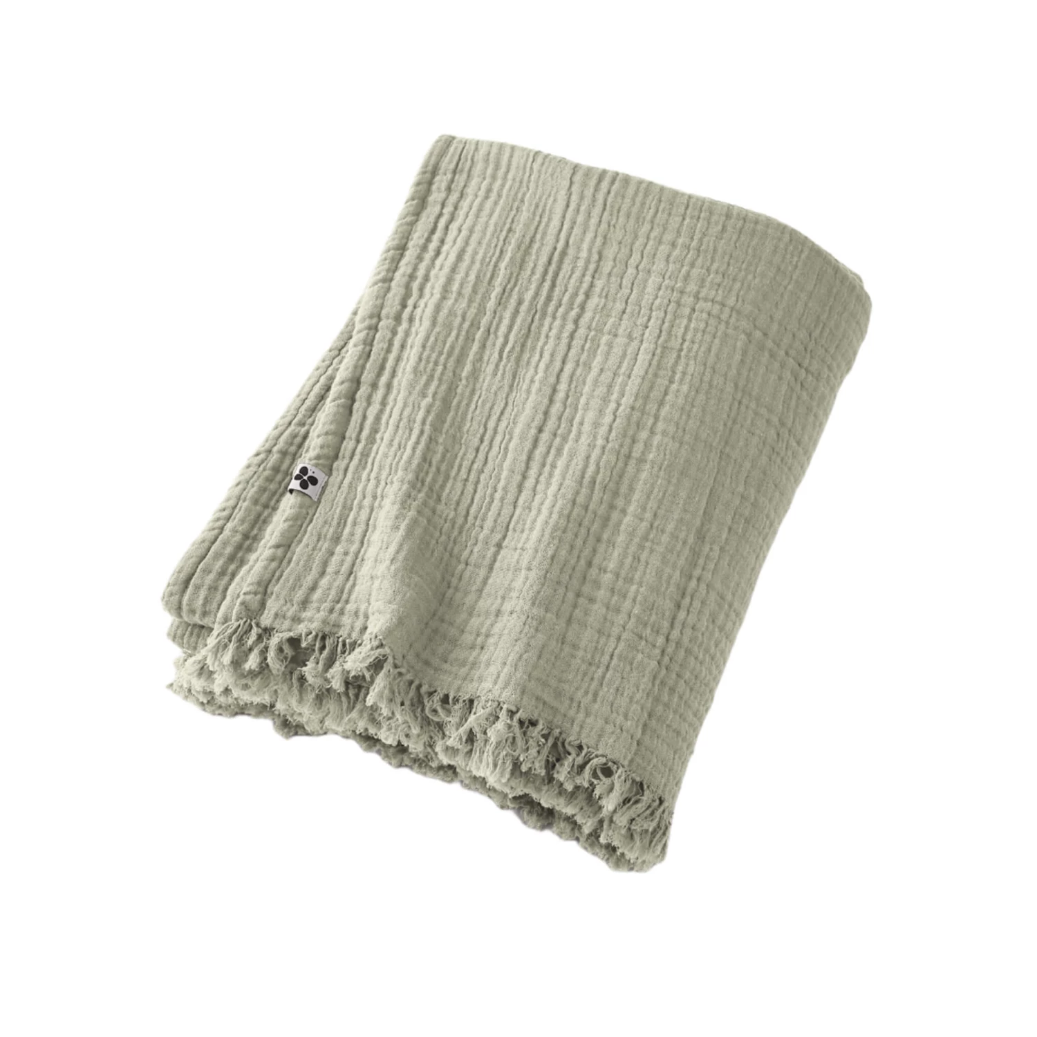 Plaid gaze de coton à franges vert d’eau